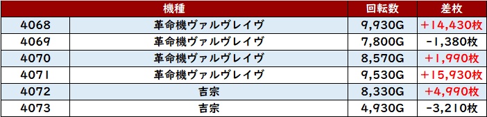 まずは「ヴヴヴ~スマスロ吉宗 4068~4073」がポテンシャルの高さを活かした結果に!