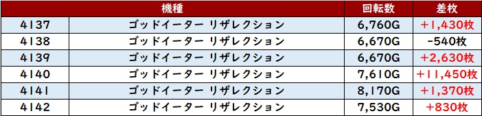 ピックアップ箇所から差枚数+1.4万枚超えが複数見られ、非常に活気が感じられた!