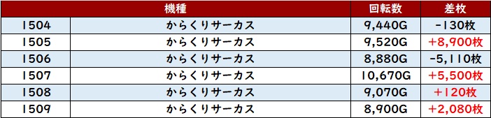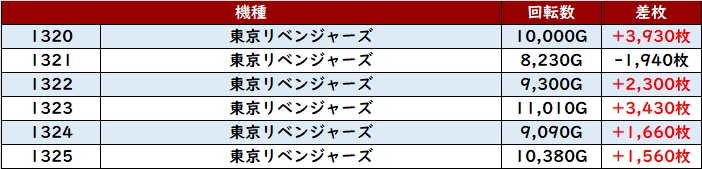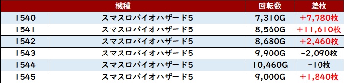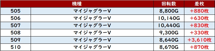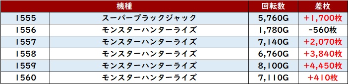 こちらも半数以上が差枚数+2,300枚超えと抜群の出玉感を残し、店内の出玉感を大きく向上させた。