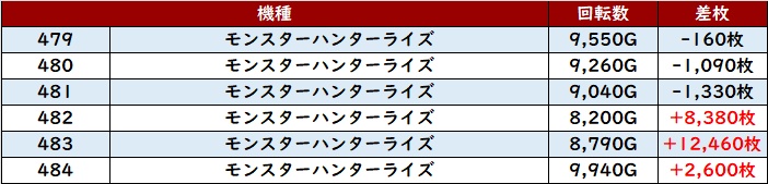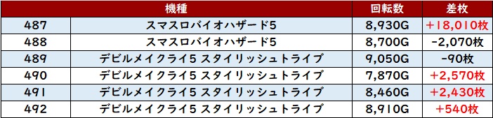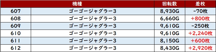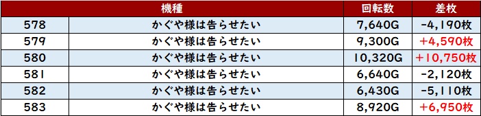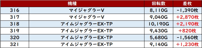 差枚数+10,130枚を筆頭に殆どが大幅プラス差枚を記録し、店内の盛り上がりへの貢献度も高かった。
