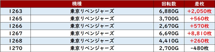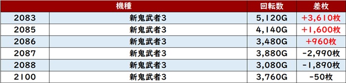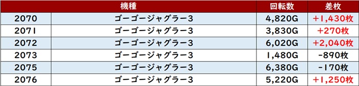 殆どの台が回転数7,000G以上を記録しており、差枚数+4,570枚を先頭に優秀な数値を見せつけた!