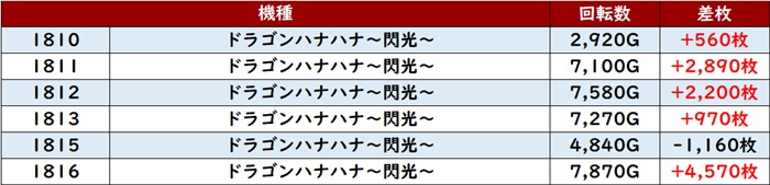 まずは「ドラハナ閃光 1810~1816」が素晴らしい出玉感に!