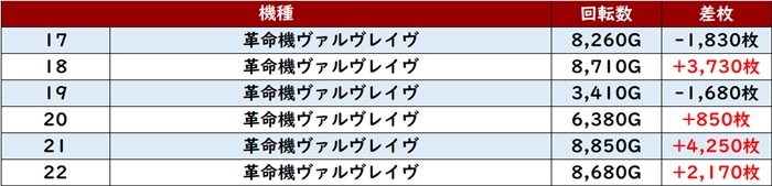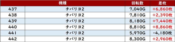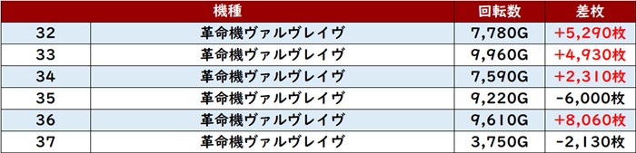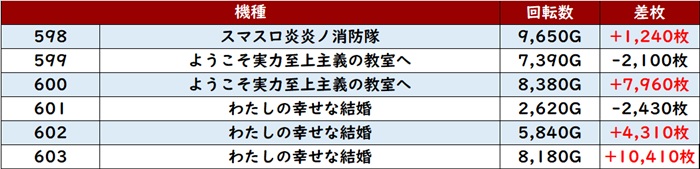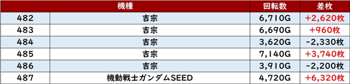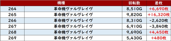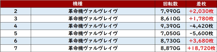こちらもピックアップ箇所は全体的にぶん回され、差枚数+2,000枚超えの台を多数排出していた。
