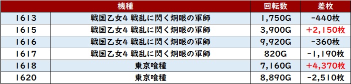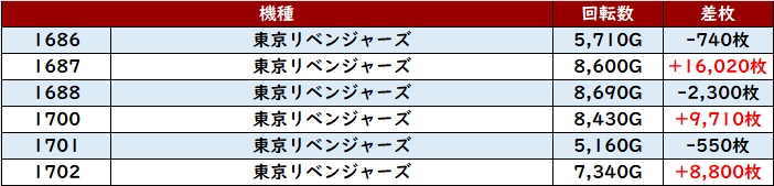 まずは「東京喰種 1621~1627」が全台差枚数+2,900枚超えと快挙を達成!