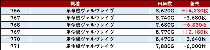 まずは「スマスロ北斗 760~765」の殆どが回転数9,100G超えの凄まじい稼働に!