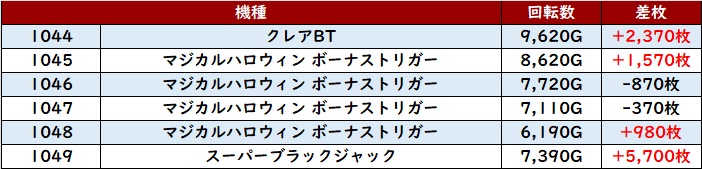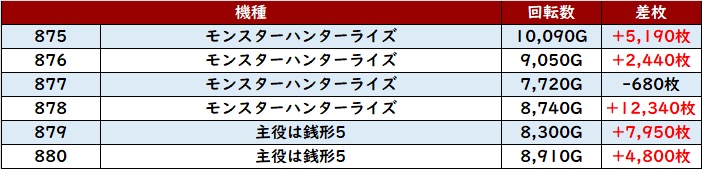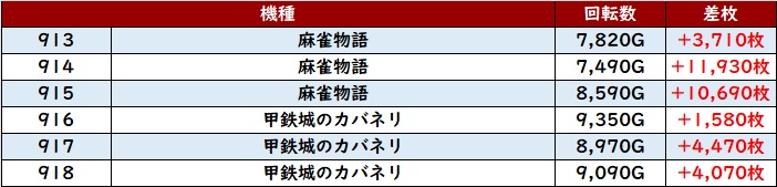 全台大幅プラス差枚に加え差枚数+1万枚超えの台も多数見られるなど、他の箇所を凌駕するような勢いを見せてくれた。