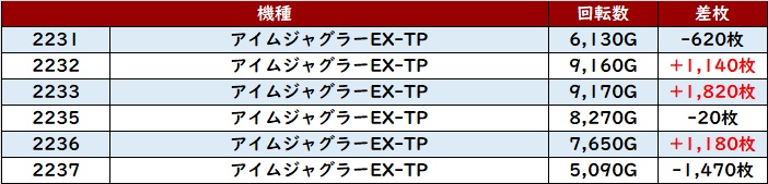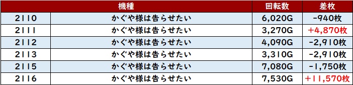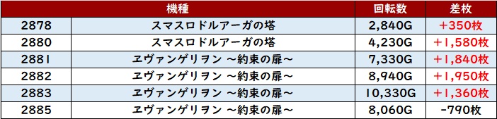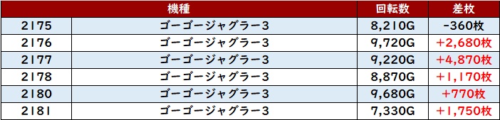 殆どの台が回転数9,300G超えとぶん回っており、状況の良さが生み出した結果であることは明らかであった.。