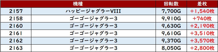 続いて「ハッピー3~ゴージャグ3 2157~2163」が絶好調!
