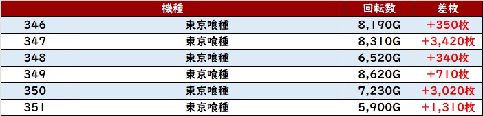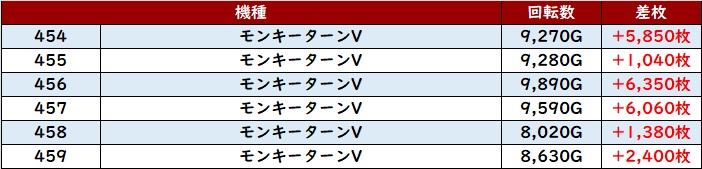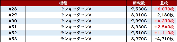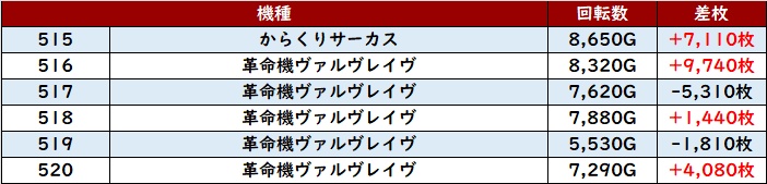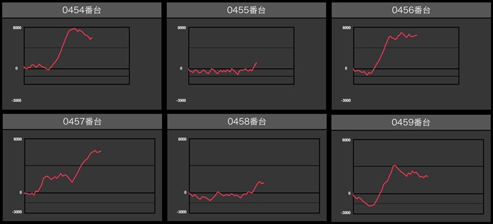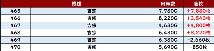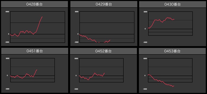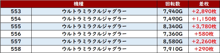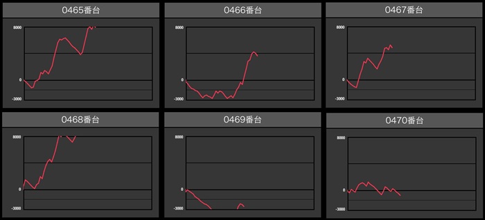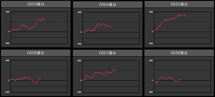 高いポテンシャルを存分に発揮し、半数が差枚数+4,000枚超えの凄まじい勢いを見せた。