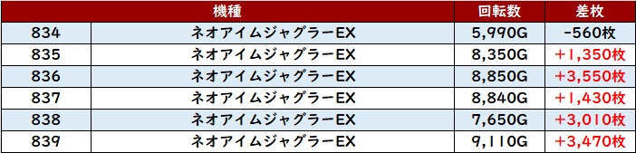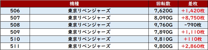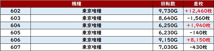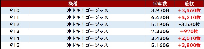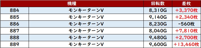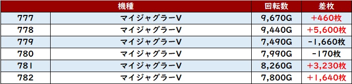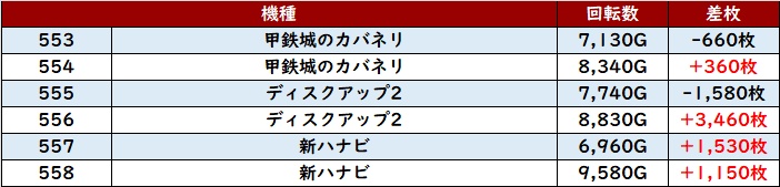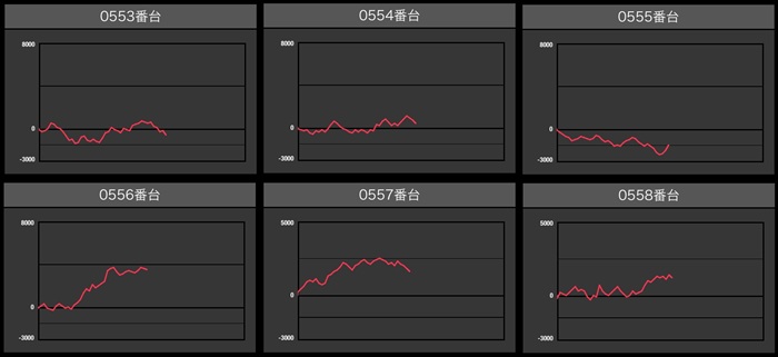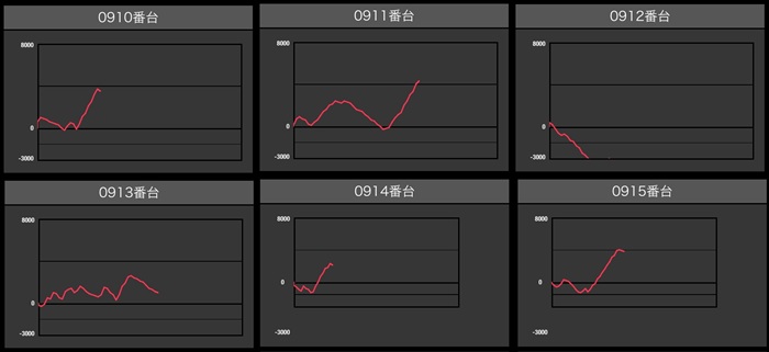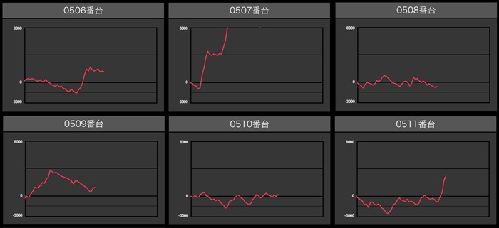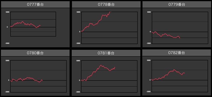 差枚数+13,460枚の目を見張る出玉感を筆頭に、6台中5台が差枚数+2,300枚超えを記録した!