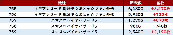こちらは差枚数+1万枚超えが2台と一際大きな注目を集め、盛り上がりの一翼を担う存在となった。