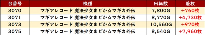 続いて「マギレコ」もピックアップ台全台回転数7,800G以上と絶好調ぶりをアピール!