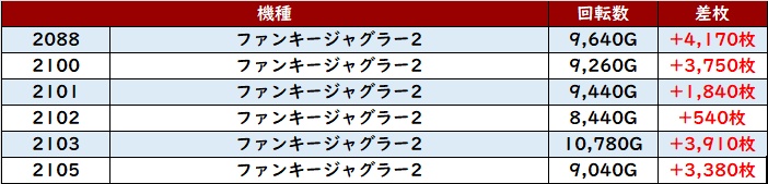 こちらも粘り腰のユーザーや差枚数+6,300枚超えが散見され、圧倒的存在感を放っていた。