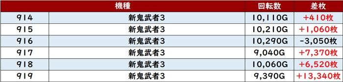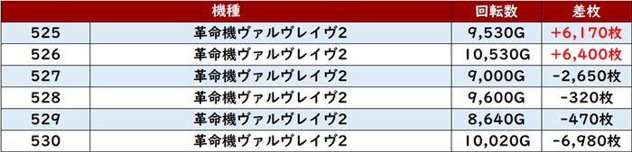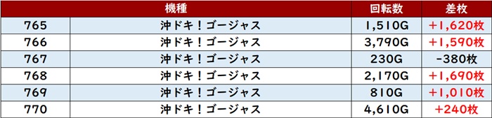 全台大幅プラス差枚に加えて、中には差枚数+12,910枚と破格の出玉感まで見られ、どの台もポテンシャルの高さがしっかり引き出されていた!