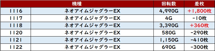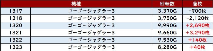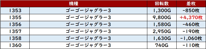 6台中5台が大幅プラス差枚と高い勝率を誇り、大きな盛り上がりを見せていた!