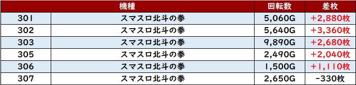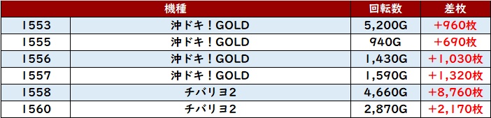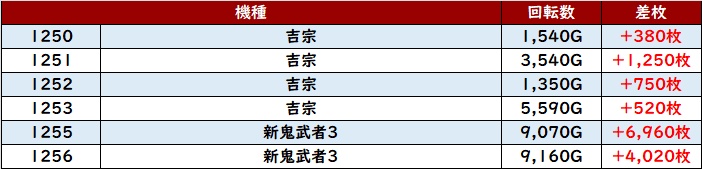 出玉感についても6台中5台が大幅プラス差枚と優秀な結果となっており、行き交うユーザー達の視線を集め続けていた!