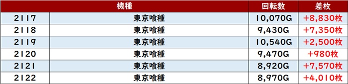 まずは「東京喰種 2117~2122」勝率100%と文句なしの結果に!