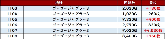 多くが差枚数+3,400枚超えと優秀な出玉感で、非常に目立っていた!