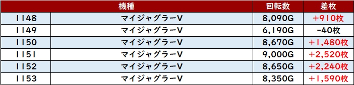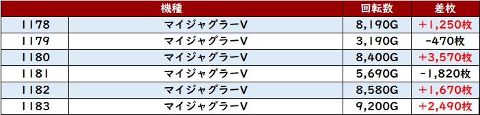 ・1台あたりの平均差枚数:+1,820枚