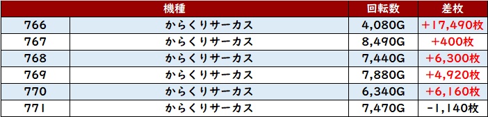 また「からくりサーカス 766~771」も凄まじい出玉感に!