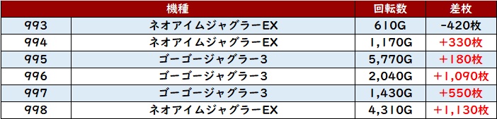 差枚数+17,490枚を先頭に圧巻の活躍で、盛況ぶりはユーザーの視線を奪ったことだろう。