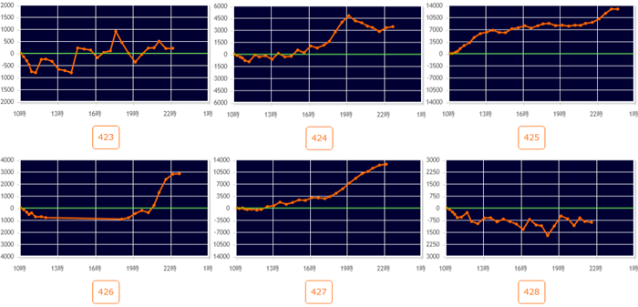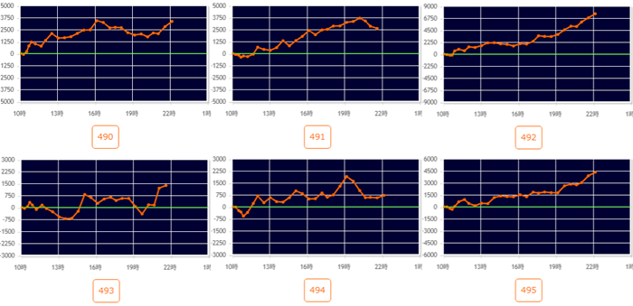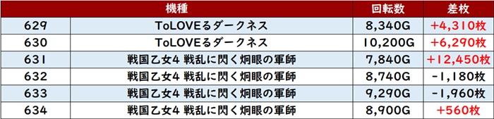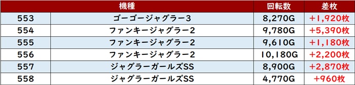 高い稼働率を記録すると共に6台中4台が差枚数+6,000枚超えと力強い出玉感が続出し、注目を集めていた。