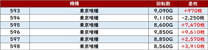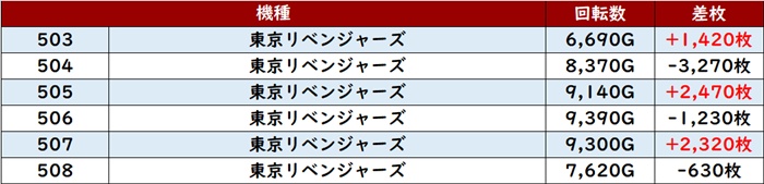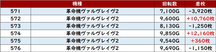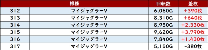 その稼働がポテンシャルを引き出し、2台が差枚数+1万枚超え、それに近しい台も現れ、圧倒的存在となった!