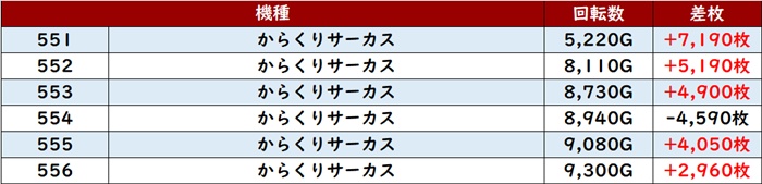 続いて「からくりサーカス 551~556」が驚異的な出玉感のオンパレードに!