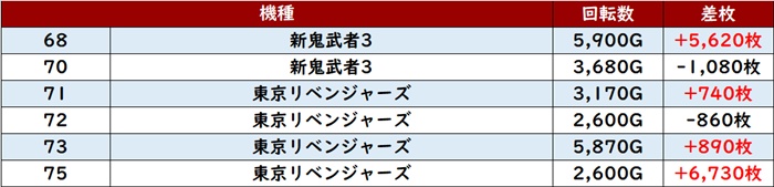 多少の荒さは見られたものの、差枚数+7,100超えを記録する台が2台も見られ、多くのユーザーの注目を浴びていた!