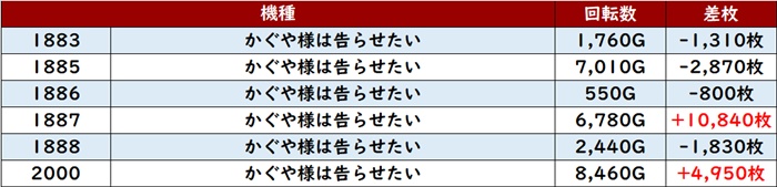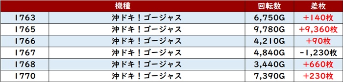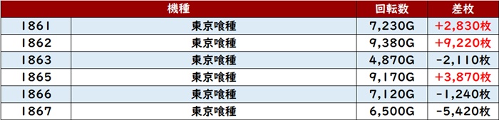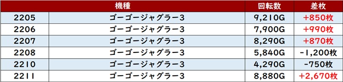 こちらも苦戦した台が少なくはなかったが、差枚数+9,220枚と大台まであと一息という台を確認することができ、周囲を活気づけていた。