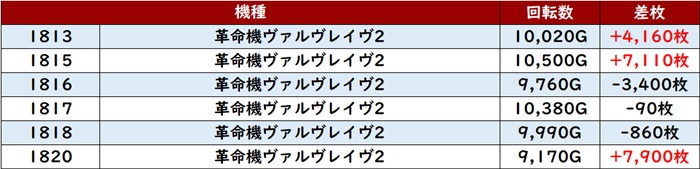 まずは「ヴヴヴ2 1813~1820」の半数が回転数1万G超えと凄まじい稼働に!