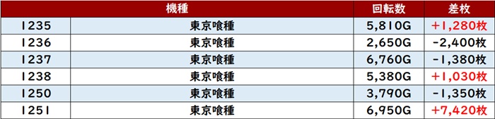 朝イチは「キンハナ」「ドラハナ閃光」「ホウオウ天翔」「ヴヴヴ2」「東京喰種」の順に埋まった。