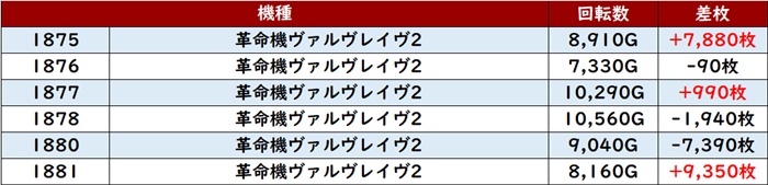 続いて「ヴヴヴ2 1875~1881」から差枚数+7,800枚超えを2台目撃!