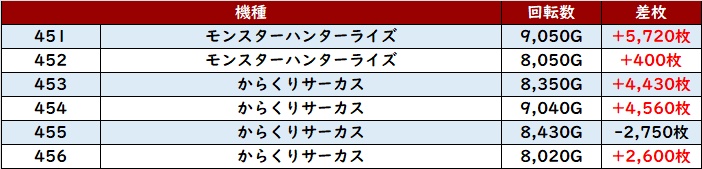 続いて「モンハンライズ~からくりサーカス 451~456」が優秀な結果に!