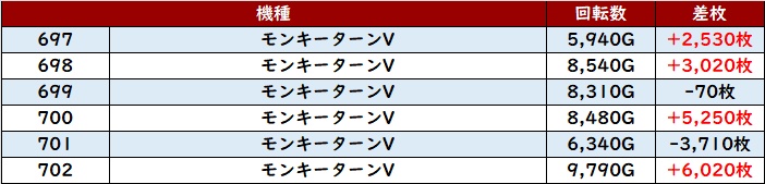まずは「モンキー5 697~702」が素晴らしい結果で盛り上がりの筆頭に!