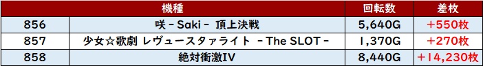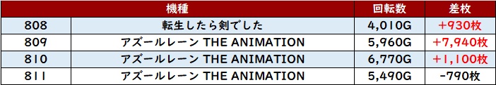 殆どが回転数8,300G超えとなっており、その状況を活かして差枚数+3,000枚超えが半数を占めた!