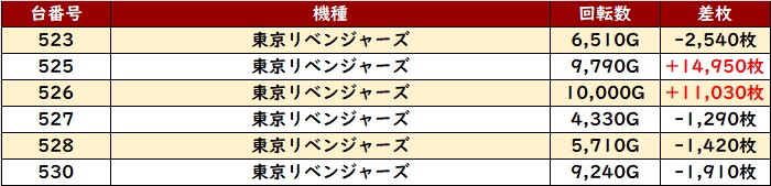 今回は「東京リベンジャーズ」「沖ドキBLACK」が大活躍!