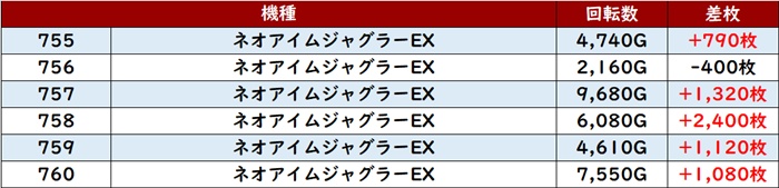 ・1台あたりの平均差枚数:+1,350枚