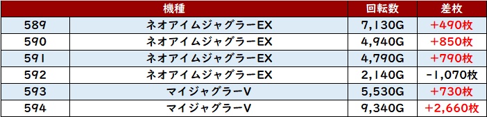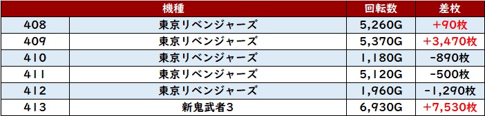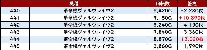 まずは「ヴヴヴ2 440~445」から差枚数+10,890枚を叩き出す台を目撃!