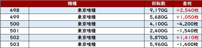 朝イチは「ヴヴヴ2」「とある超電磁砲2」「東京喰種」「ヴヴヴ」「マイジャグ5」と埋まった。