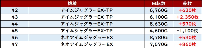 ・集計機種計42台総差枚数:+57,700枚