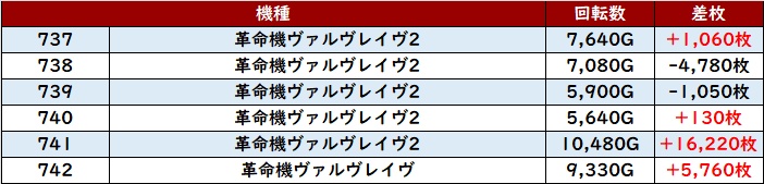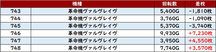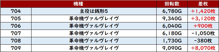 また「銭形5~ヴヴヴ 704~709」も機種を跨いで素晴らしい結果に!