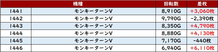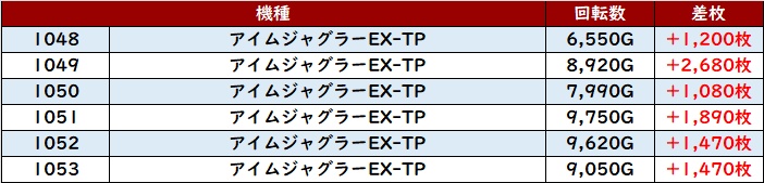 終日ほとんどマイナス域に突入することなく安定した推移を見せており、全台大幅プラス差枚と優秀な結果を記録していた!