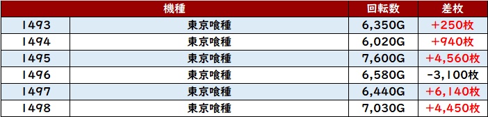 朝イチは「東京喰種」「いざ番」「アズレン」「スマスロ北斗」「ヴヴヴ2」「マギレコ」「東京リベンジャーズ」「からくりサーカス」「モンキー5」と埋まっていった。
