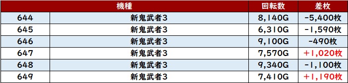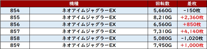 多くが回転数8,000G超えを記録し、その稼働も相まって差枚数+7,500枚超えの台を多数目撃することができた!