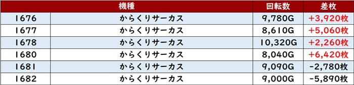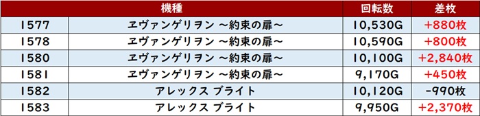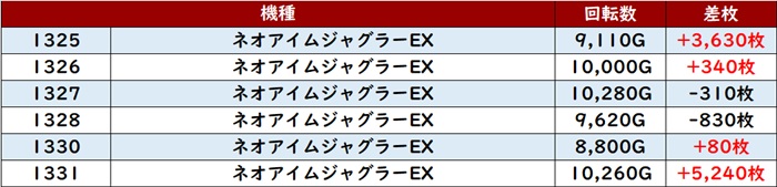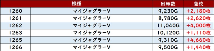 まずは「マイジャグ5 1260~1266」が全台大幅プラス差枚と安定感抜群の結果に!