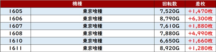 なんと2台が差枚数+1.3万枚超えとインパクトのある出玉感を叩き出し、店内の出玉感を大きく向上させた。