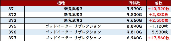 なんと差枚数+1万枚超えの台が2台も現れ、多くのユーザー達の視線を奪い続けていた!