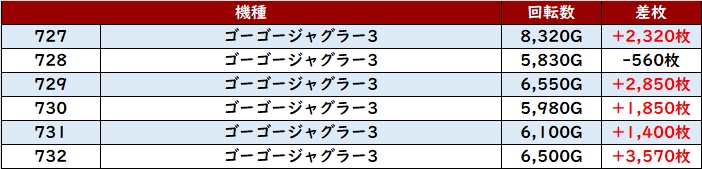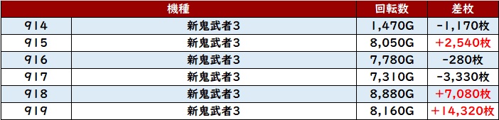 まずは「スマスロ北斗 951~956」が全台大幅プラス差枚と文句なしの結果に!
