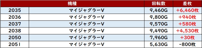 全台回転数8,400G超えとしっかり打ち込まれたことで、殆どが大幅プラス差枚の素晴らしい出玉感に繋がっていた。